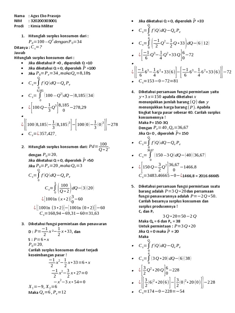 Pd =100 – Q dengan P 0=34 C s=∫ 2