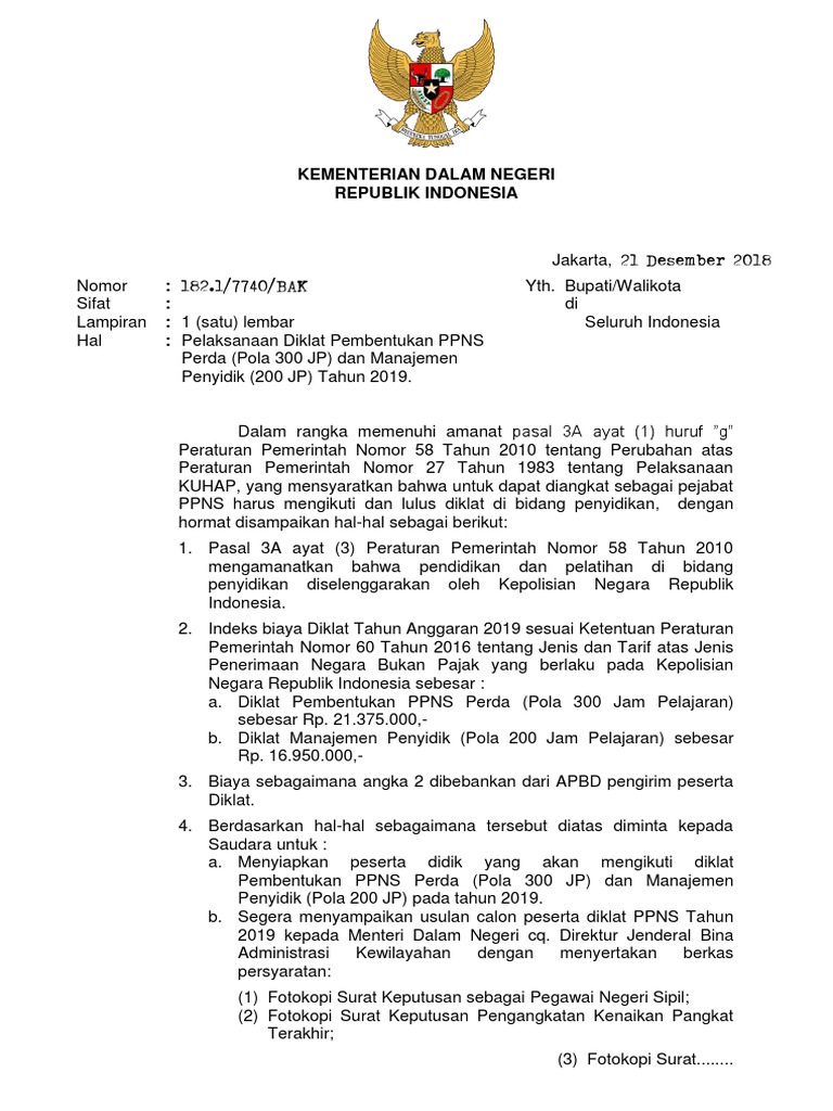 Hal : Pelaksanaan Diklat Pembentukan PPNS