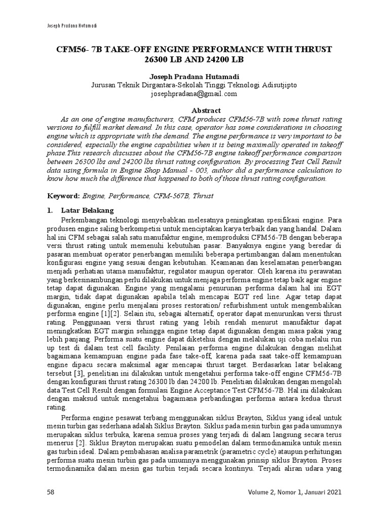 [1] Desianto Duapadang. 2017. Analisis Perhitungan Engine Performance CFM56-7B