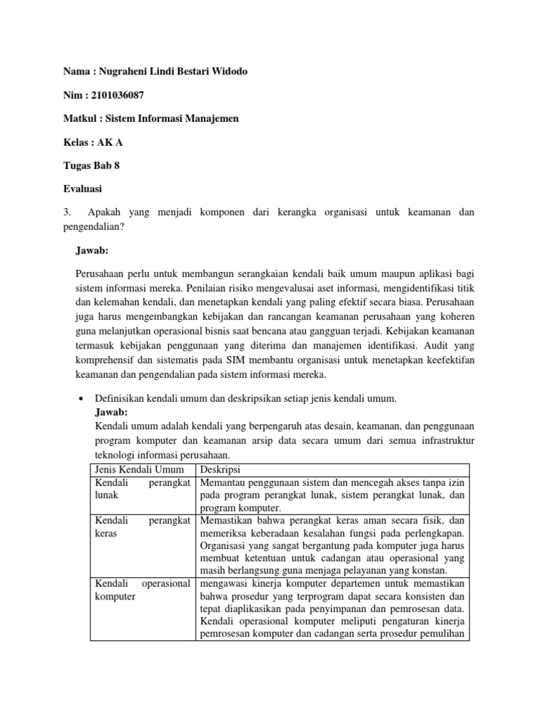 keamanan dan pengendalian pada sistem informasi mereka.
