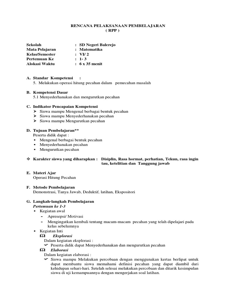RPP Matematika Kelas VI: Pecahan dan Desimal