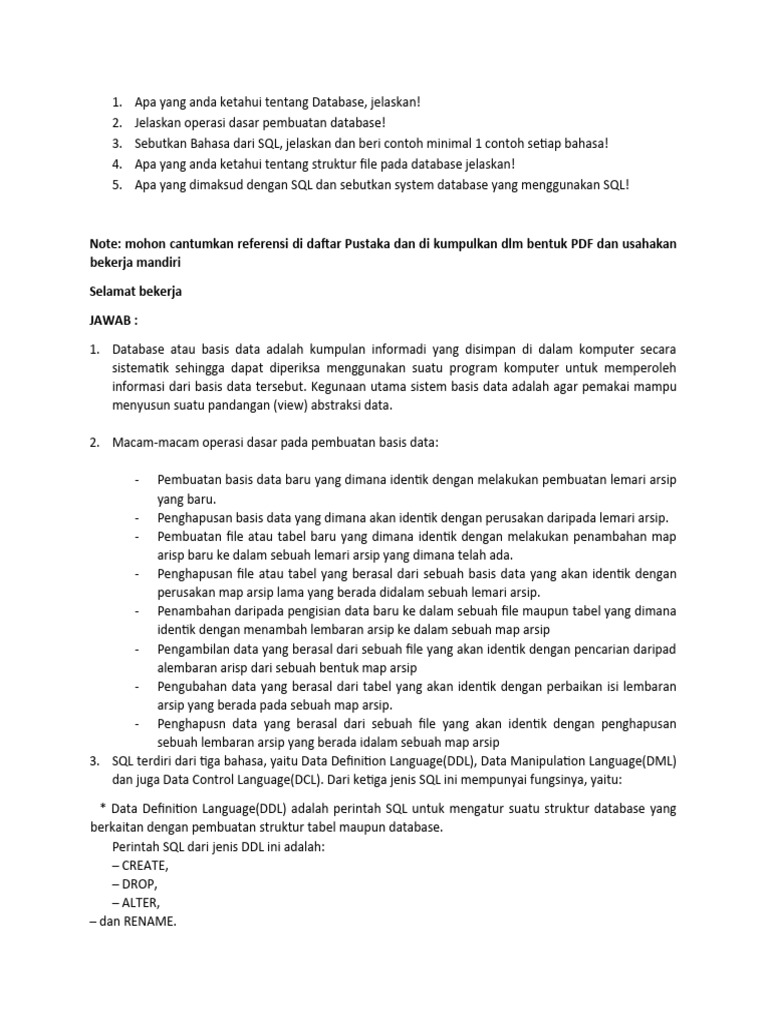 Note: mohon cantumkan referensi di daftar Pustaka dan di kumpulkan dlm bentuk PDF dan usahakan