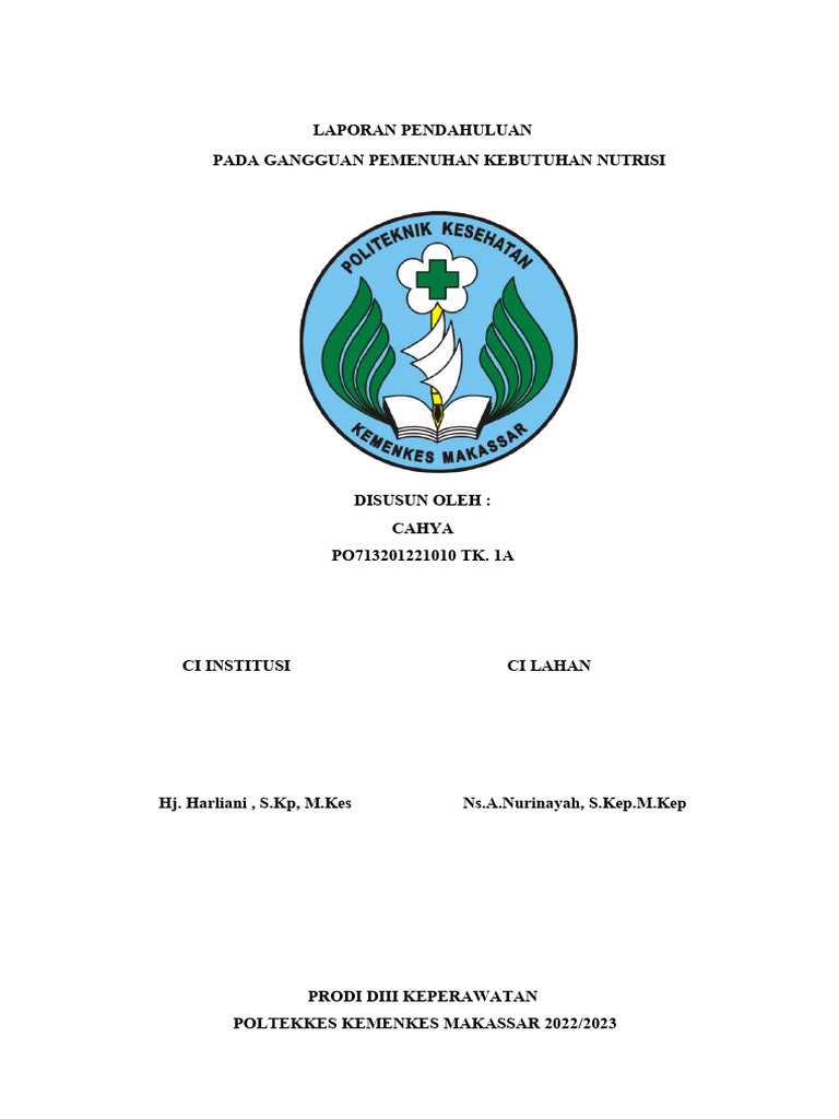 1. Ketidakseimbangan nutrisi kurang dari kebutuhan tubuh
