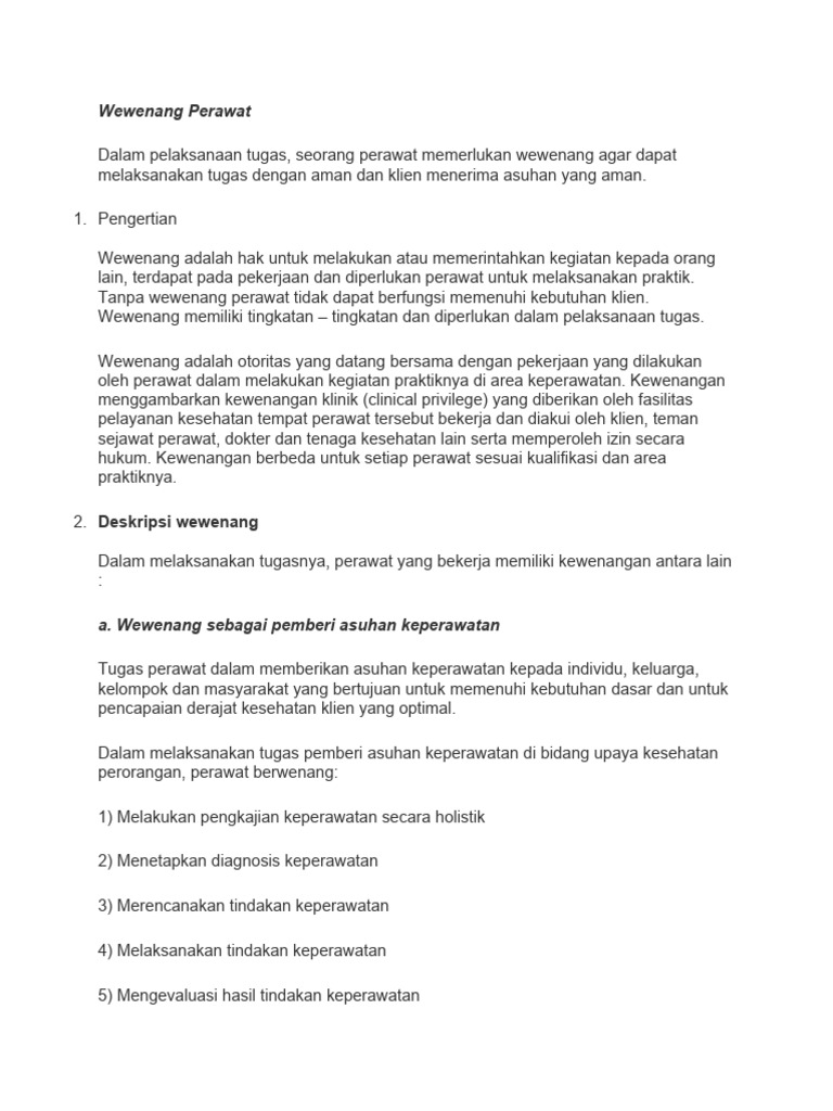 keperawatan berwenang (rincian daftar wewenang terlampir):