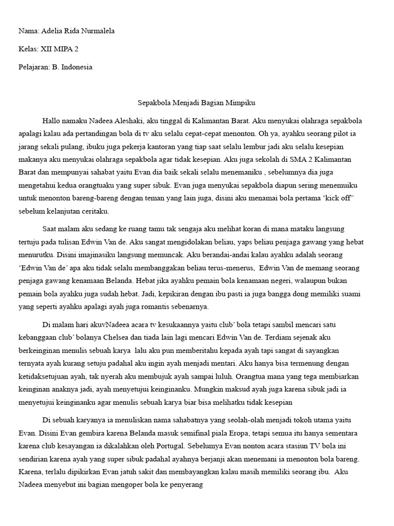 makanya aku menyukai olahraga sepakbola agar tidak kesepian. Aku juga sekolah di SMA 2 Kalimantan