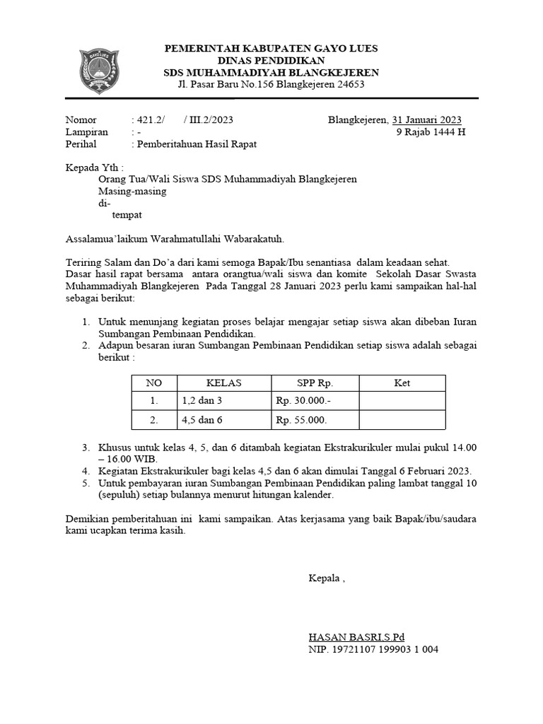 Muhammadiyah Blangkejeren Pada Tanggal 28 Januari 2023 perlu kami sampaikan hal-hal