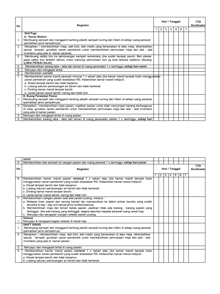 5. Membersihkan bak sampah di ruangan pasien dan ruang perawat 1 x seminggu setiap hari jumat