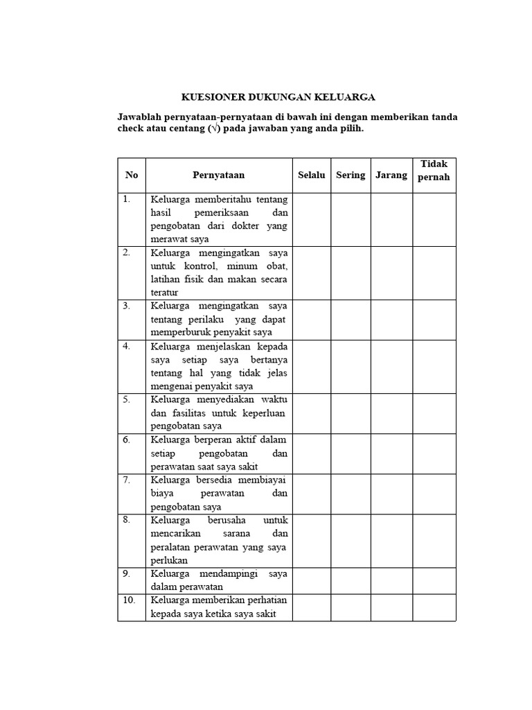 KUESIONER DUKUNGAN KELUARGA
