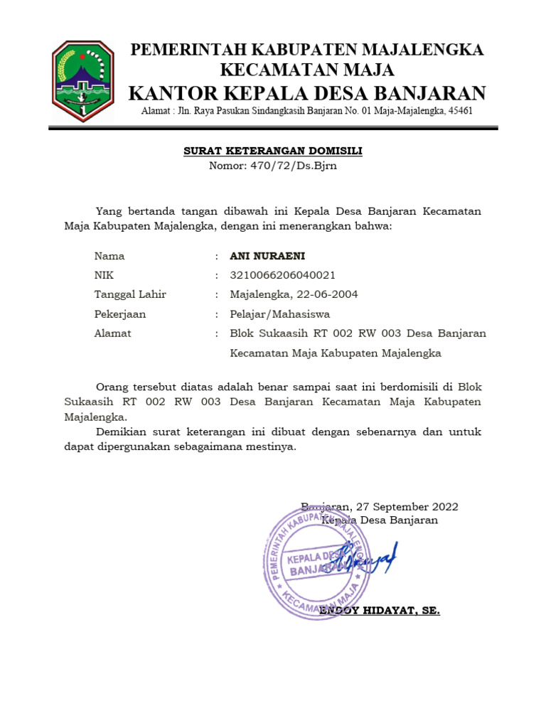 Maja Kabupaten Majalengka, dengan ini menerangkan bahwa: