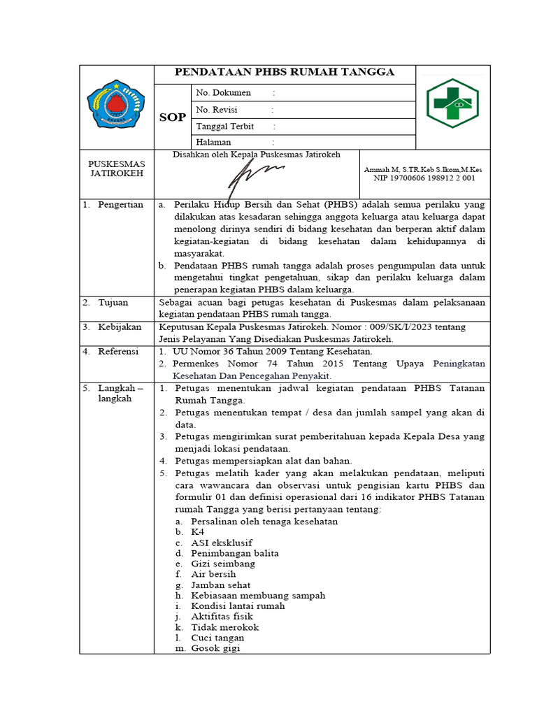 Disahkan oleh Kepala Puskesmas Jatirokeh
