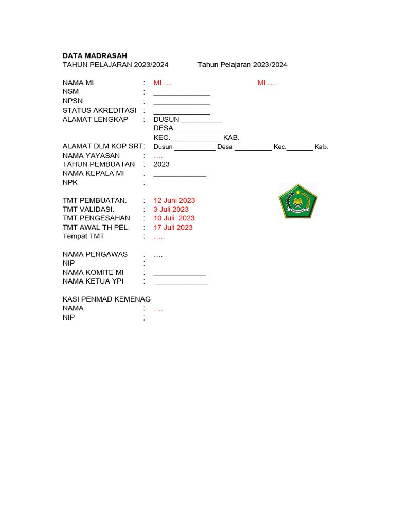 MADRASAH TAHUN PELAJARAN 2023/2024.