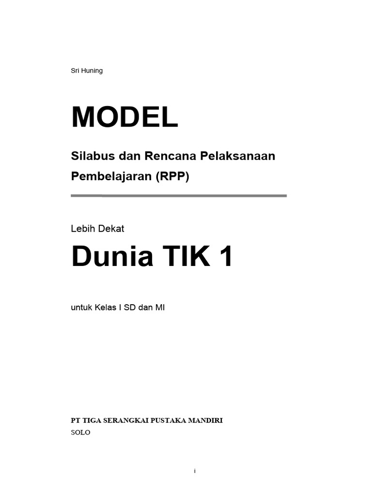 Model Silabus dan RPP ini disusun sebagai pelengkap buku Lebih Dekat Dunia TIK 1.