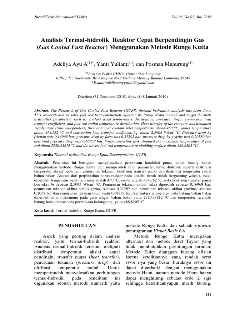 Kata kunci: Termal-hidrolik, Runge Kutta, GCFR