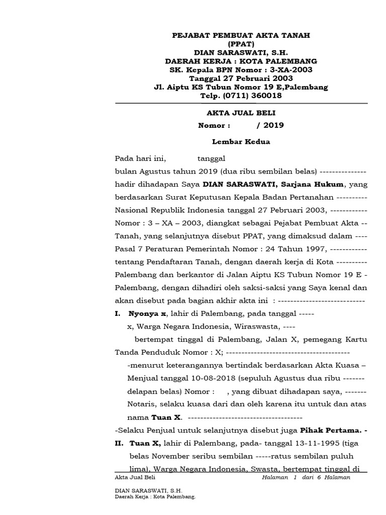 Akta Jual Beli Halaman 1 dari 6 Halaman