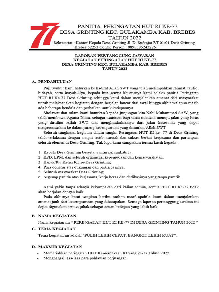 Nama kegiatan ini “ PERINGATAN HUT RI KE-77 DI DESA GRINTING TAHUN 2022 “