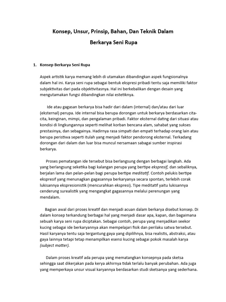 Konsep, Unsur, Prinsip, Bahan, Dan Teknik Dalam