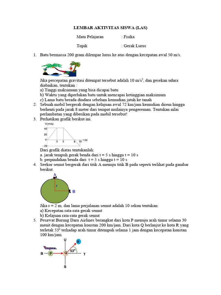 1. Batu bermassa 200 gram dilempar lurus ke atas dengan kecepatan awal 50 m/s.
