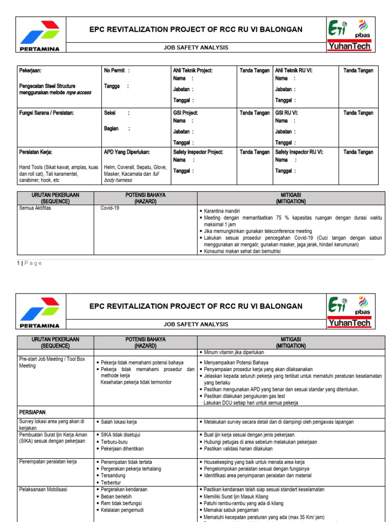 (SIKA) sesuai dengan pekerjaan Terburu-buru Hubungi petugas di area sebelum melakukan pekerjaan