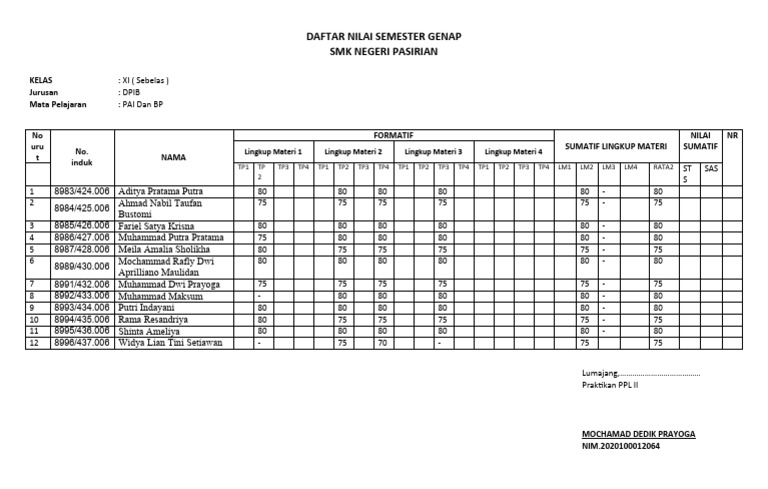 DAFTAR NILAI SEMESTER GENAP