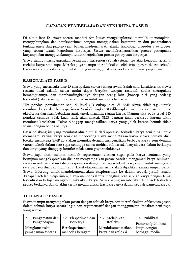 CAPAIAN PEMBELAJARAN SENI RUPA FASE D