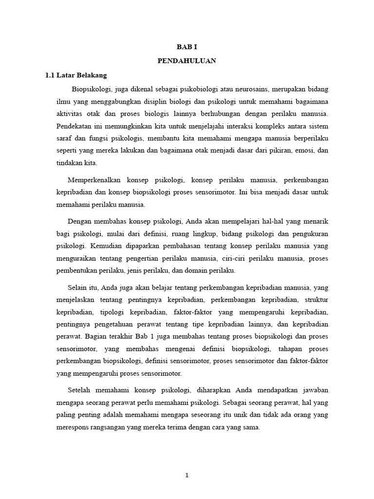 perawat. Bagian terakhir Bab 1 juga membahas tentang proses biopsikologi dan proses