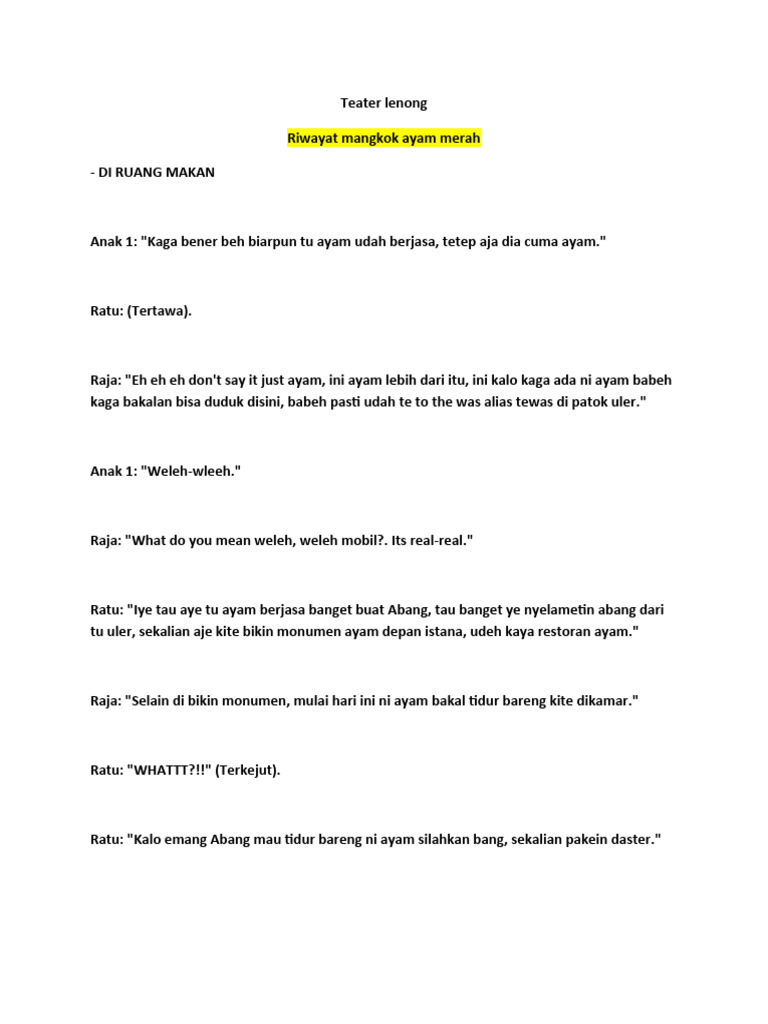 Ratu: "dan sebagai kenang kenangan terhadap ayam kesayangannya raja maka mulai hari ini