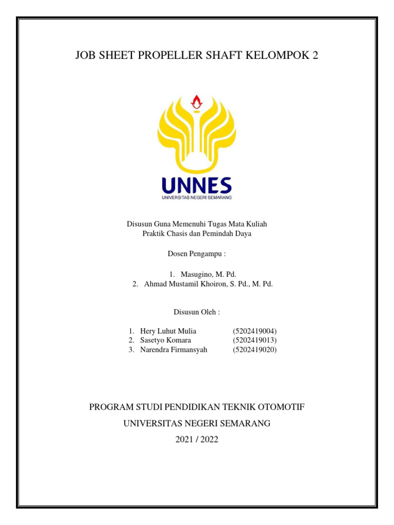 JOB SHEET PROPELLER SHAFT KELOMPOK 2