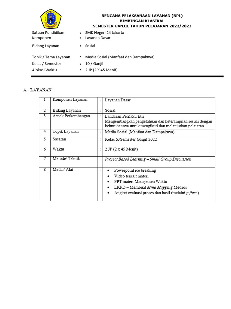 RENCANA PELAKSANAAN LAYANAN (RPL)