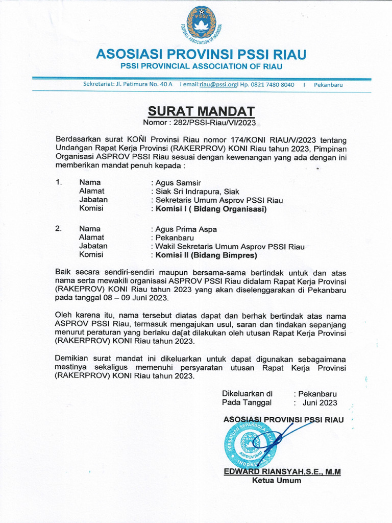 Nomor : 282/PSSI-Riau/V1/2023