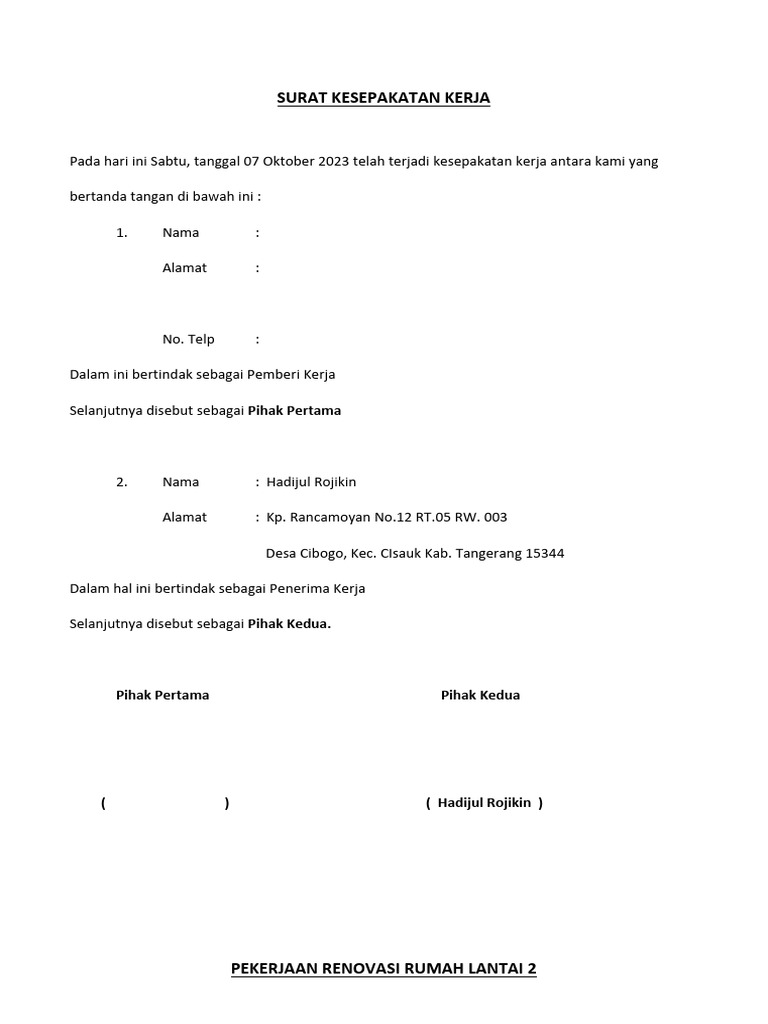 SURAT KESEPAKATAN KERJA