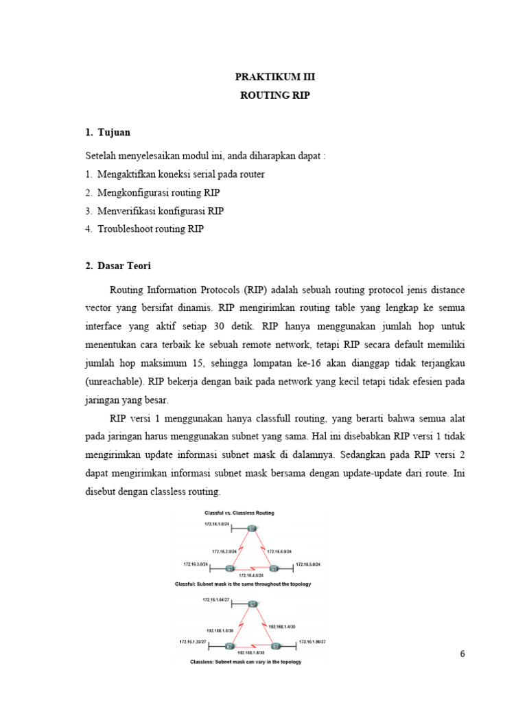 mengirimkan update informasi subnet mask di dalamnya. Sedangkan pada RIP versi 2