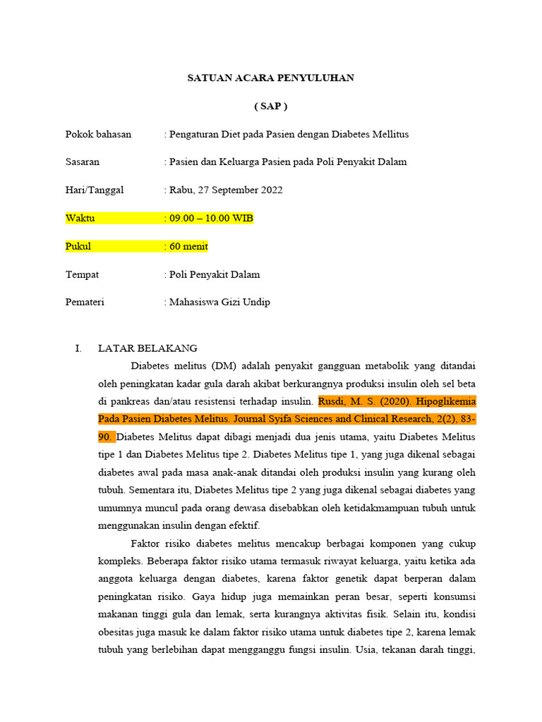Pokok bahasan : Pengaturan Diet pada Pasien dengan Diabetes Mellitus