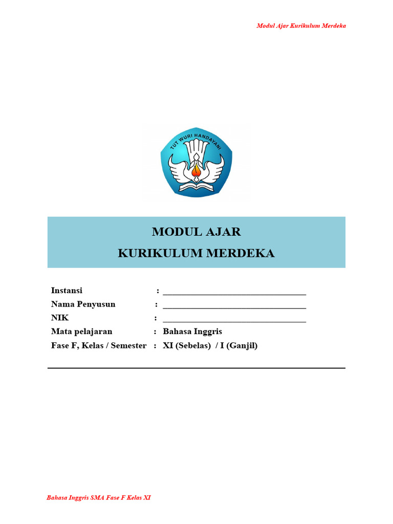 Fase F, Kelas / Semester : XI (Sebelas) / I (Ganjil)