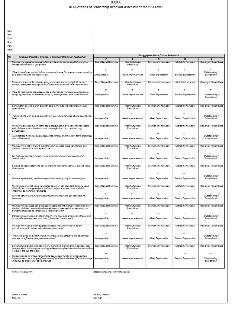 10 Questions of Leadership Behavior Assessment for PPO Level