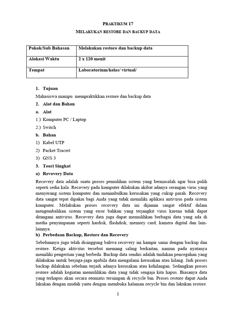 Pokok/Sub Bahasan Melakukan restore dan backup data