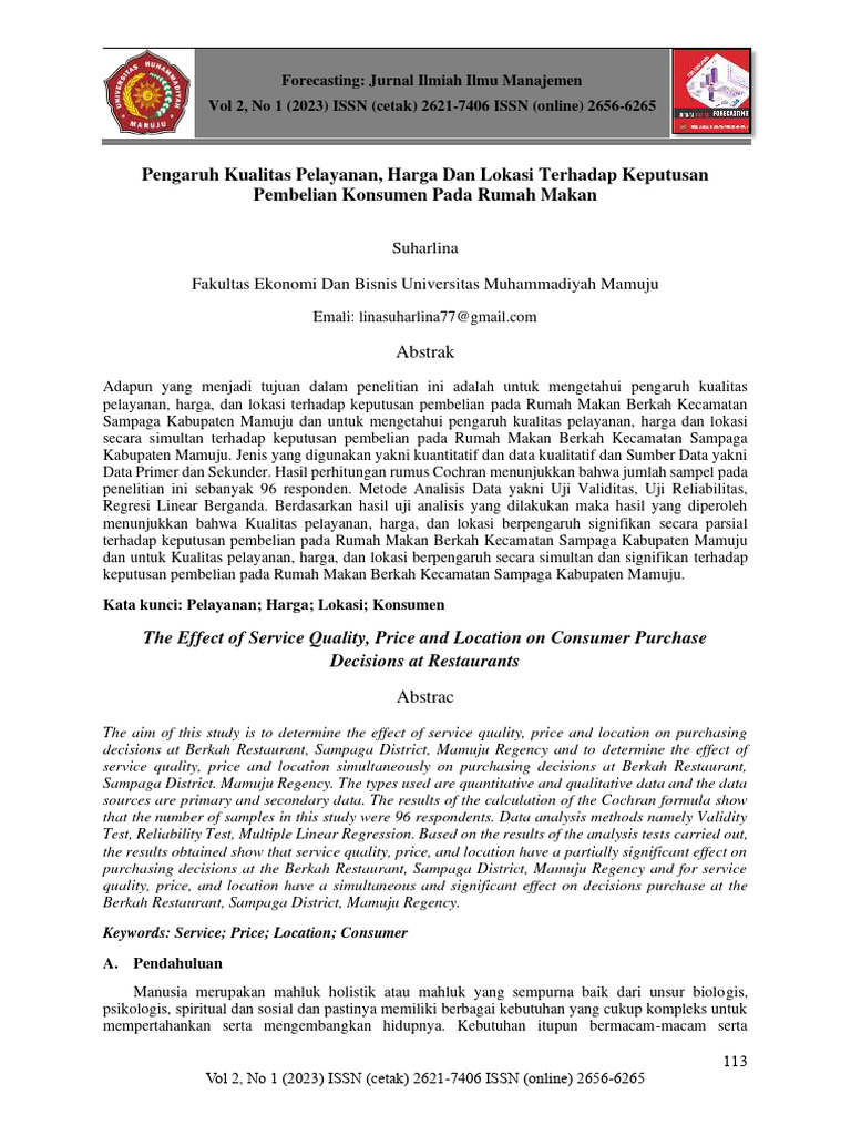 Indahsari, L, N, dan Roni, M. (2022). Pengaruh Kualitas Pelayanan, Harga, Dan Lokasi Terhadap