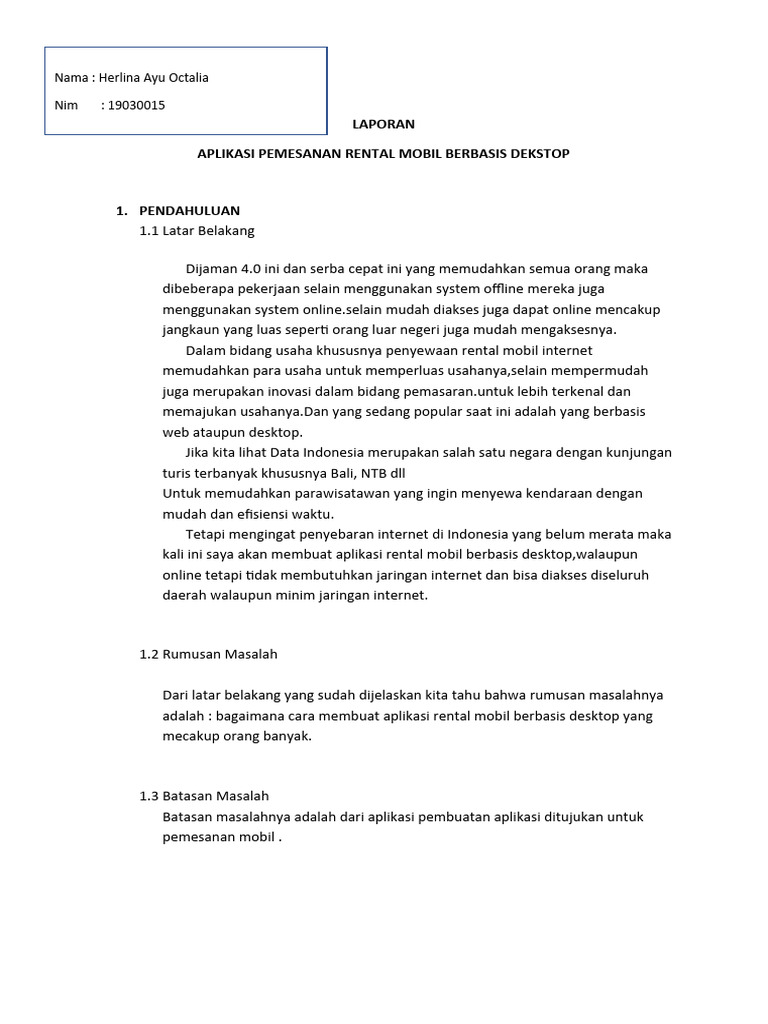 adalah : bagaimana cara membuat aplikasi rental mobil berbasis desktop yang