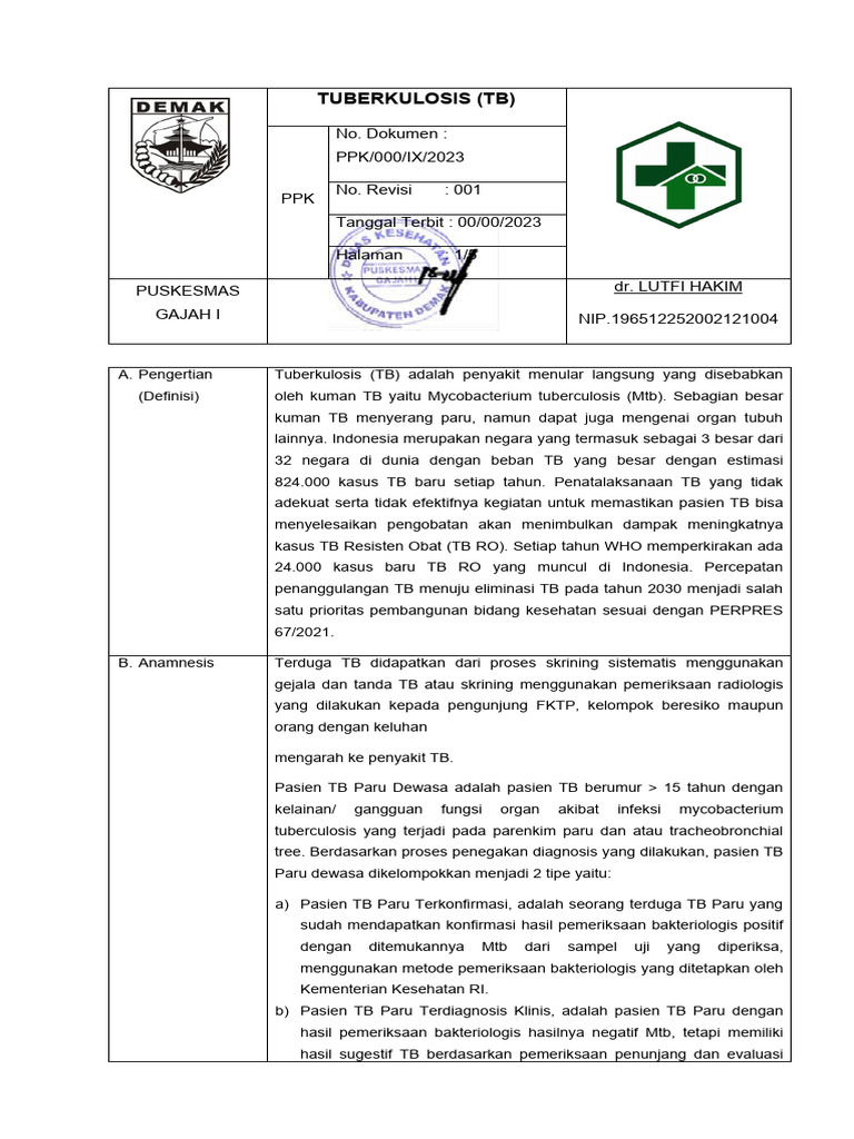 A. Pengertian Tuberkulosis (TB) adalah penyakit menular langsung yang disebabkan