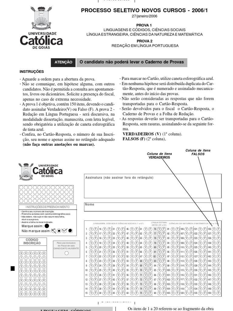 dato assinalar Verdadeiro(V) ou Falso (F). A prova 2 - • Serão devolvidos para o fiscal o Cartão-Resposta, o