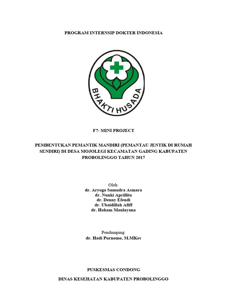 judul “Pembentukan Pemantik Mandiri (Pemantau Jentik Di Rumah Sendiri) Di Desa
