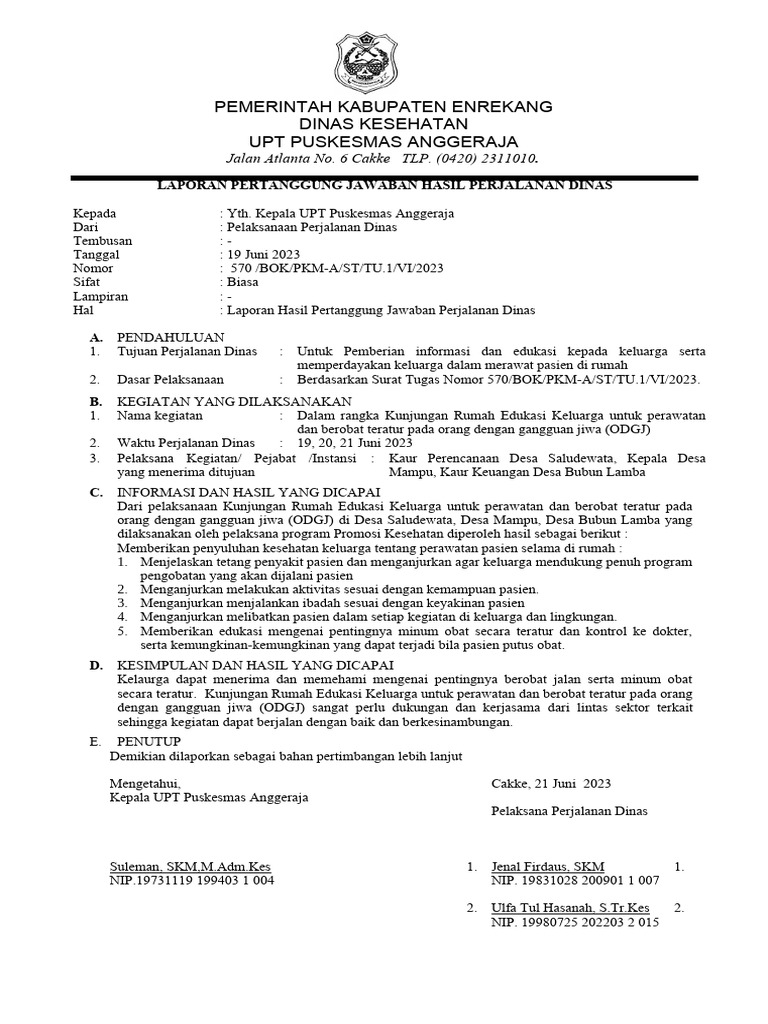 1. Tujuan Perjalanan Dinas : Untuk Pemberian informasi dan edukasi kepada keluarga serta
