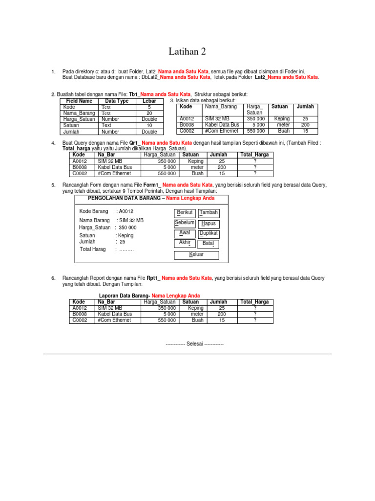 1. Pada direktory c: atau d: buat Folder, Lat2_Nama anda Satu Kata, semua file yag dibuat disimpan di Foder ini.