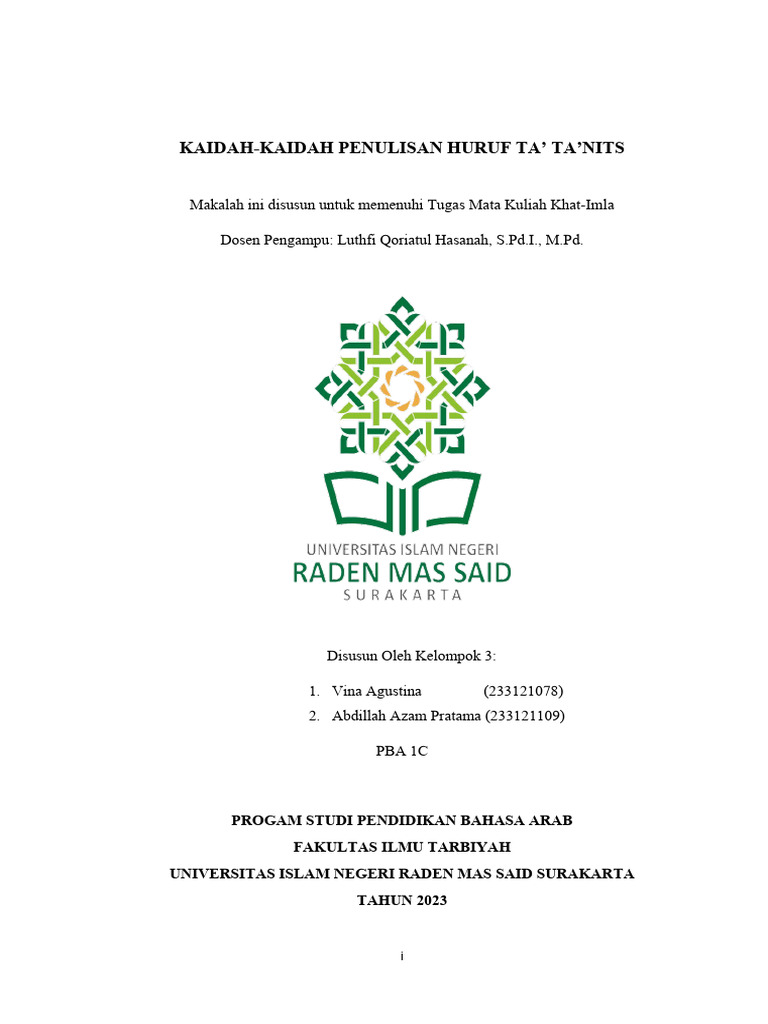 makalah yang berjudul “Kaidah-kaidah Penulisan Huruf Ta’ Ta’nits” ini tepat