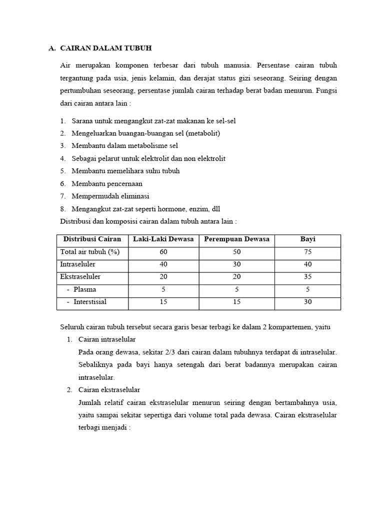 Seluruh cairan tubuh tersebut secara garis besar terbagi ke dalam 2 kompartemen, yaitu