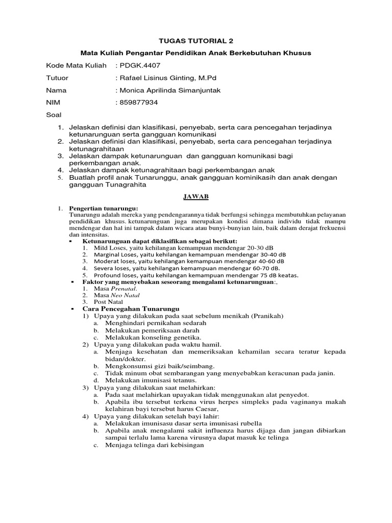 3. Jelaskan dampak ketunarunguan dan gangguan komunikasi bagi