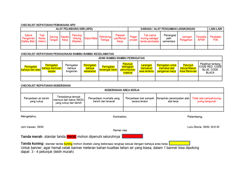 CHECKLIST KEPATUHAN PENGGUNAAN RAMBU-RAMBU KESELAMATAN