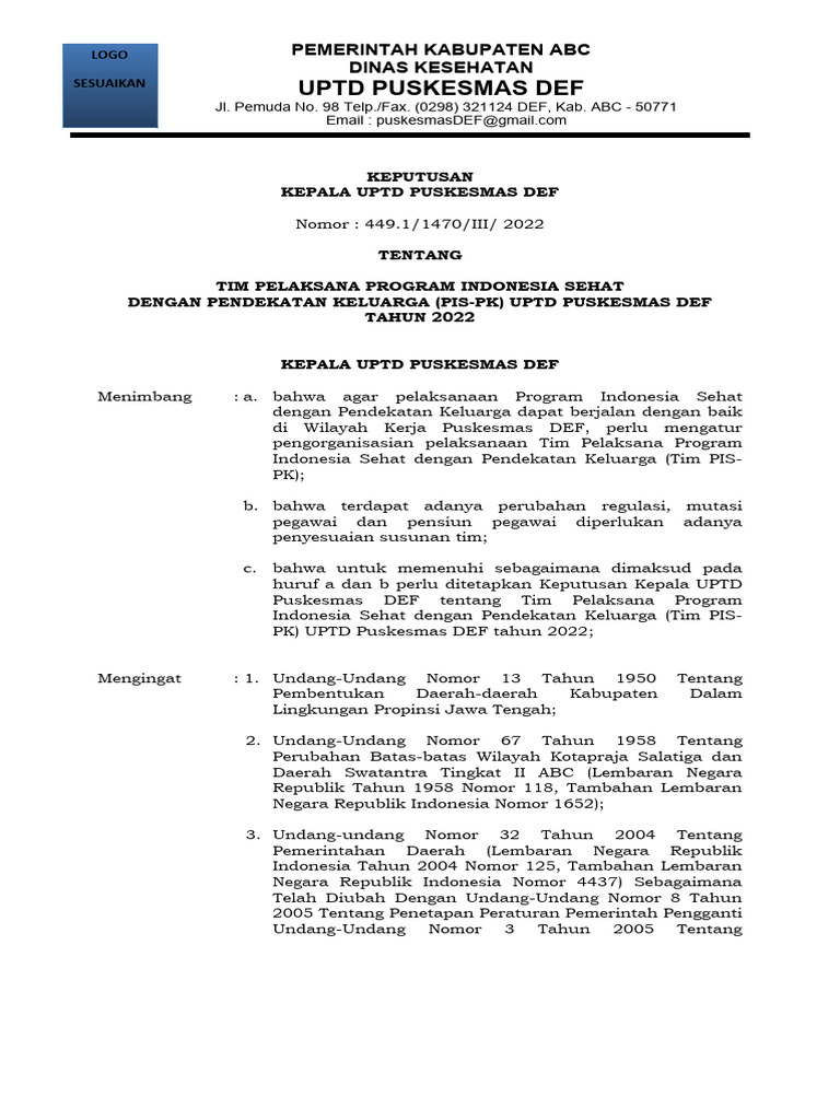 19. Keputusan Kepala Dinas Kesehatan Kabupaten ABC