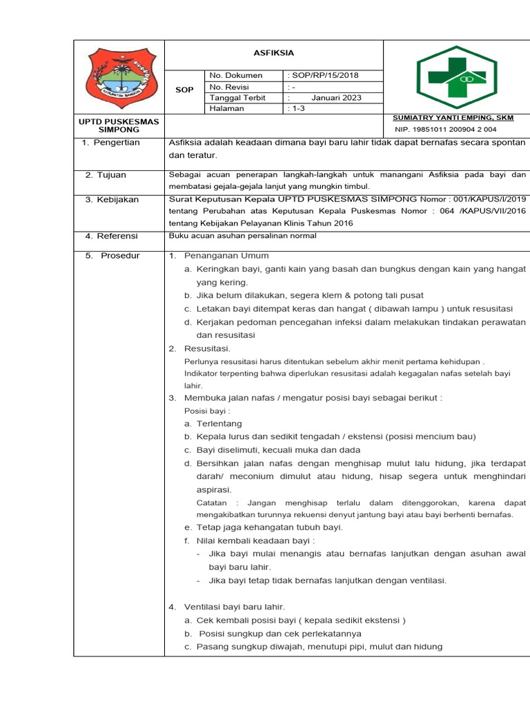 2. Tujuan Sebagai acuan penerapan langkah-langkah untuk manangani Asfiksia pada bayi dan