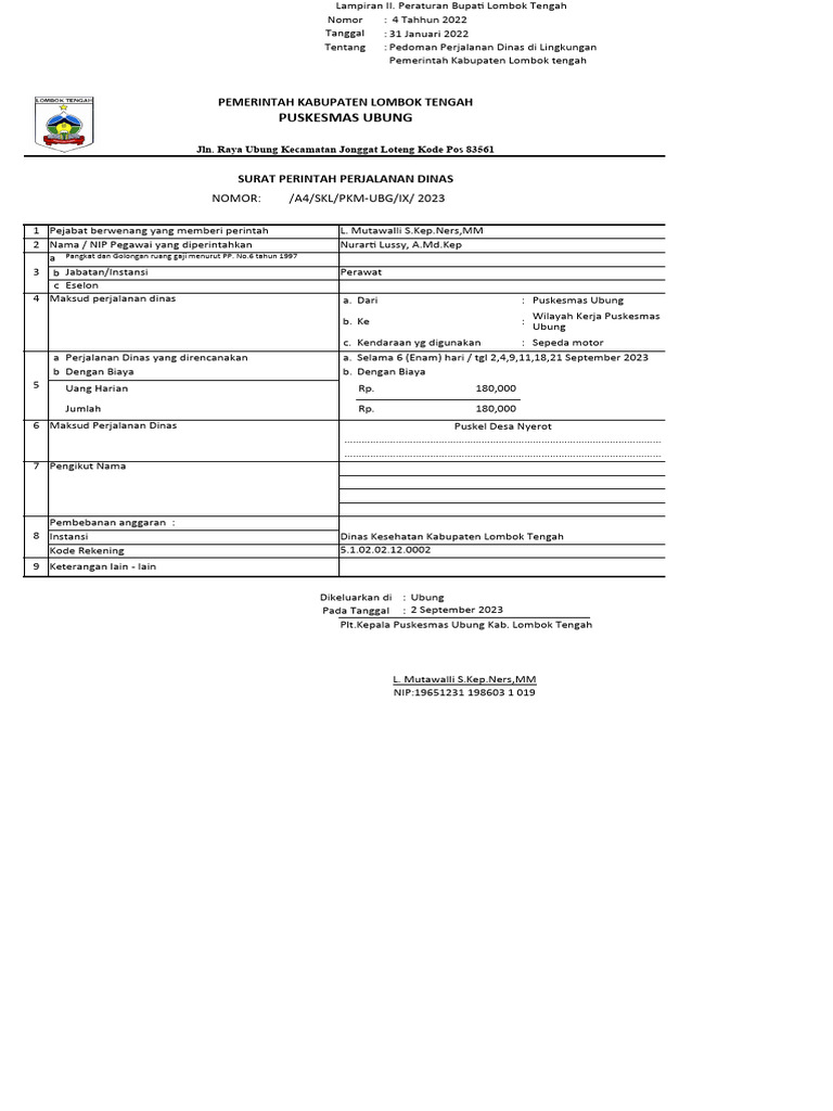 Kepala Puskesmas Ubung Kab. Lombok Tengah