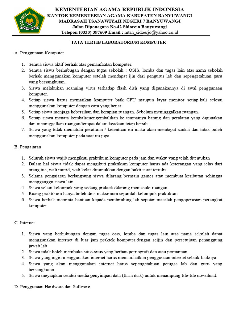 Telepon (0333) 397609 Email : mtsn_sidoerjo@yahoo.co.id